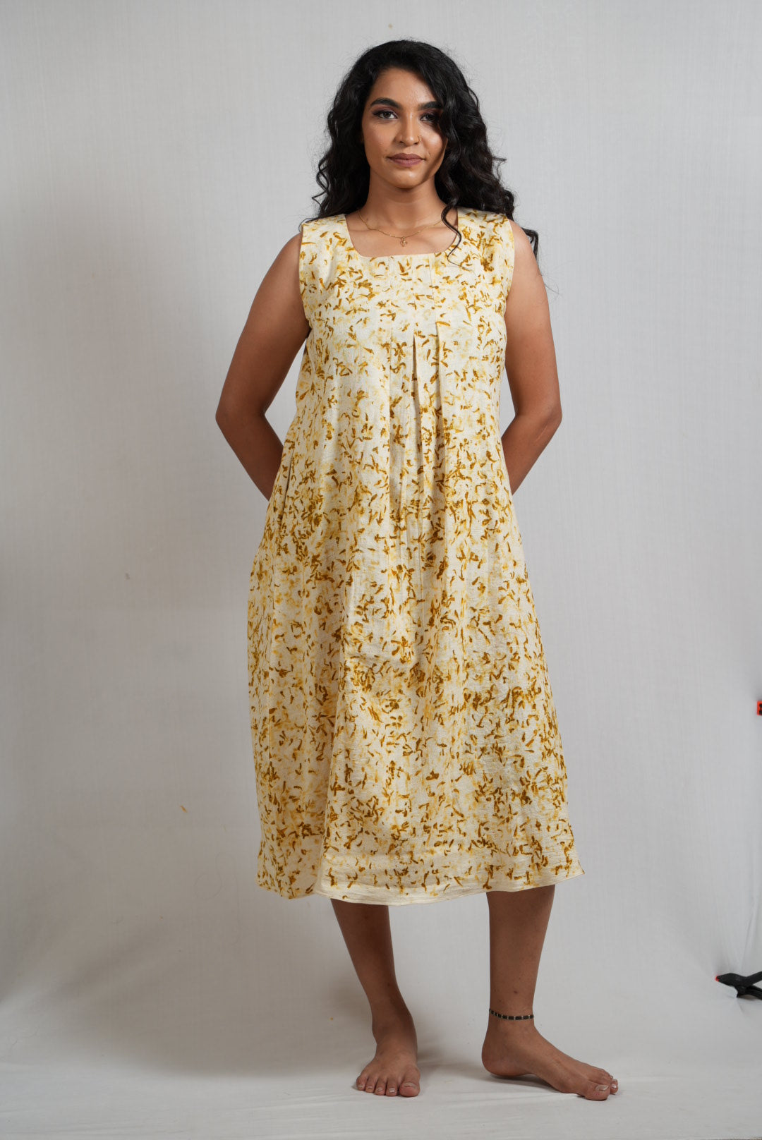 A-Line Leafage Dress, featuring a delicate and intricate leafage pattern using Silver Oak, Guava, Neem,...